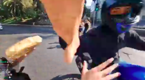 Đoạn clip cắt ra từ phiên livestream cho thấy, một người đi xe máy chạy chậm lại gần phía nữ streamer, nhanh chóng giật mạnh điện thoại trên tay cô rồi phóng đi rất nhanh. Nạn nhân chỉ có thể khắc phục sự cố bằng cách đăng tải hình ảnh tên trộm cùng hiện trạng sợi dây điện thoại bị đứt với nội dung yêu cầu tên cướp trả lại điện thoại.